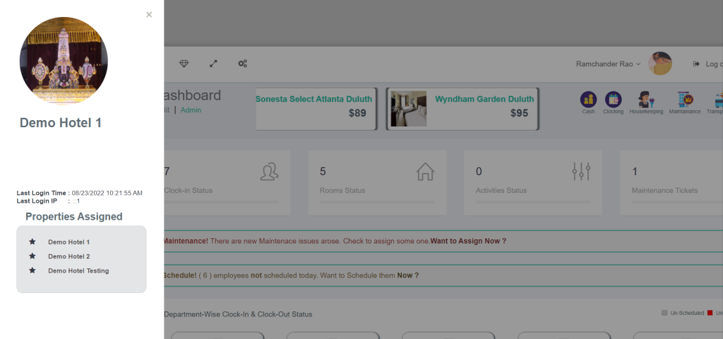 Swipe the employee from one property to another instantly in necessity and get the employee timesheet and payroll in one place. One-click to swipe other properties to view the performance of the employees at their fingertips.
